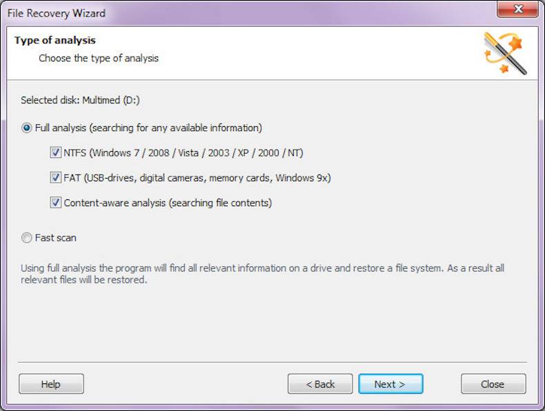 - Кеңири талдоонун жүрүшүндө топтолгон маалыматтардын негизинде катуу бузулган, жазылып жана жок болгон файл тутумдарын калыбына келтирүү